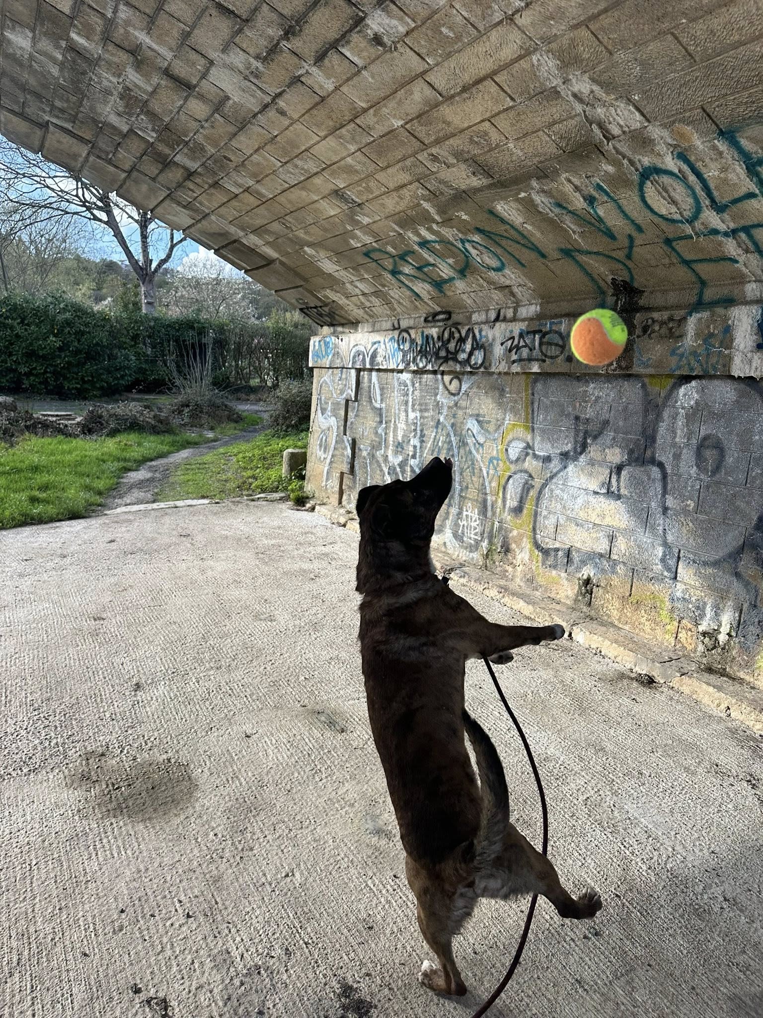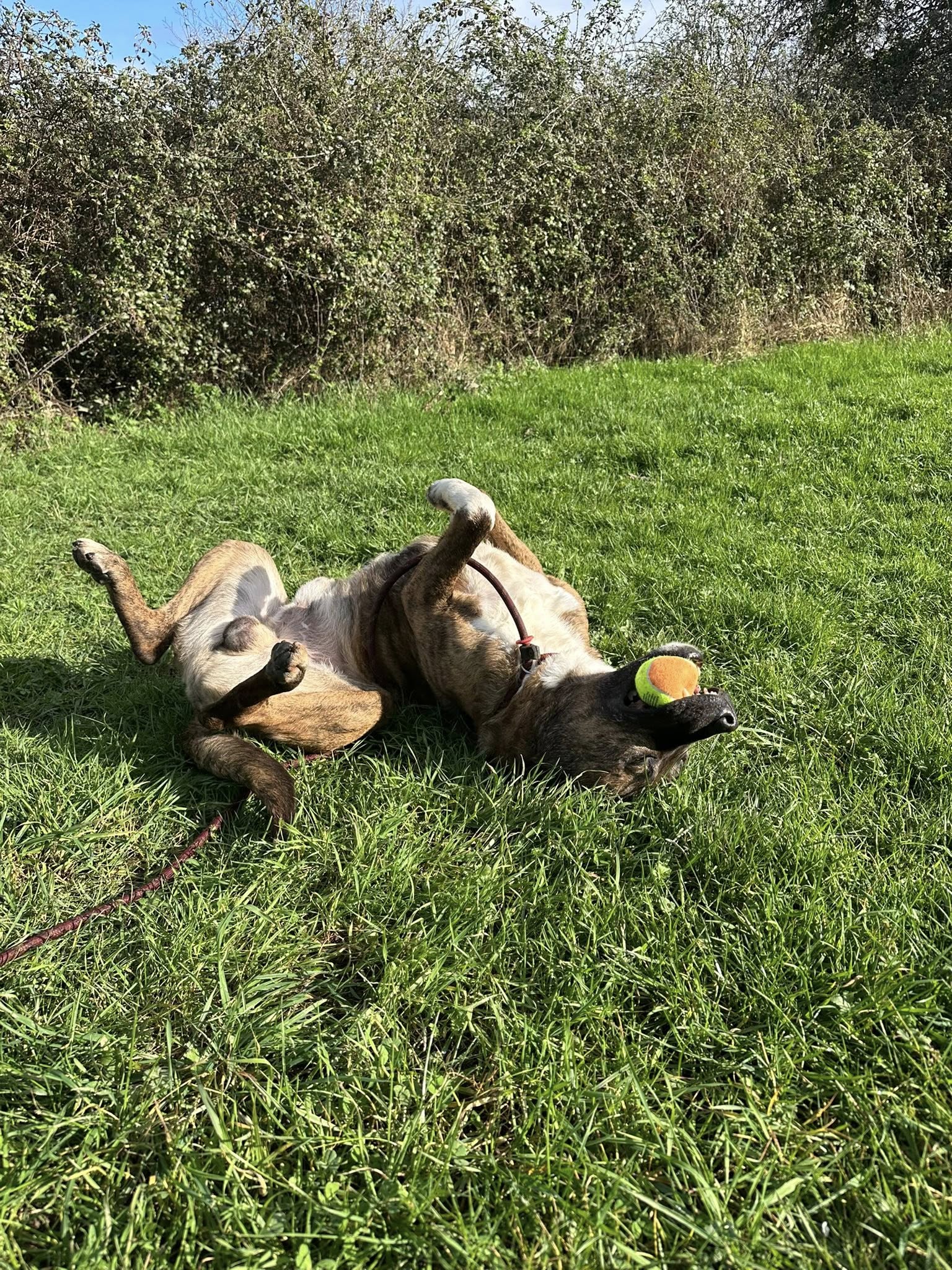 Facile en sortie de box, Pogo est très agréable en balade, il est gourmand il sait s’asseoir pour avoir une friandise.
